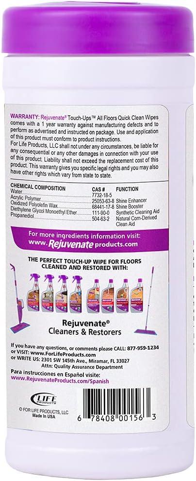 Rejuvenate All Floors Quick Clean Wipes 30 Large Floor Cleaning Wet Wipes Streak-Free Residue-Free Non-Greasy